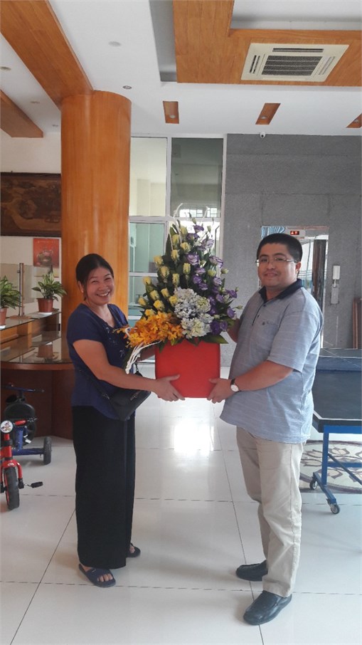 Đ/C: Nguyễn Minh Phương (Trưởng bộ môn Tài chính - Doanh nghiệp) tặng hoa bà Vũ Thị Hạnh